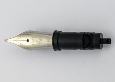 - Schreibfedern aus 14 Karat oder 18 Karat Gold in der Standardgröße #5 in den Spitzenbreiten EF, F, M, B, BB und Stub in 1,1 mm mit passendem Tintenleiter und dazugehöriger Einschraubhülse